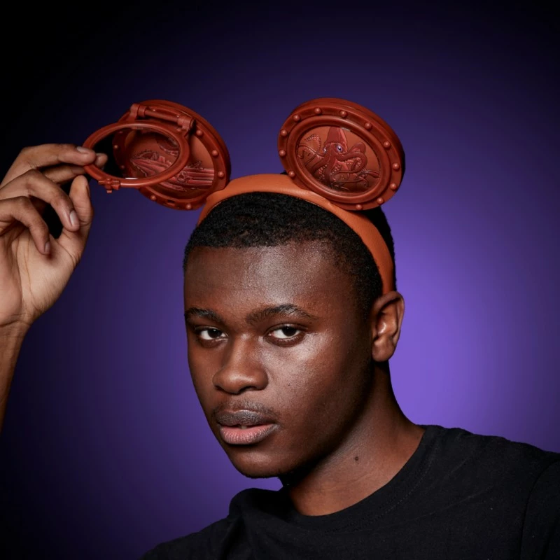 You’ll have a whale of a tale to tell of your explorations and adventures aboard the Nautilus submarine while wearing this simulated leather ear headband themed to Walt Disney’s mighty motion picture 20,000 Leagues Under the Sea. With portholes as mouse ears, you’ll see the giant squid attack and honour Disney’s 100 anniversary with a special metal tag.