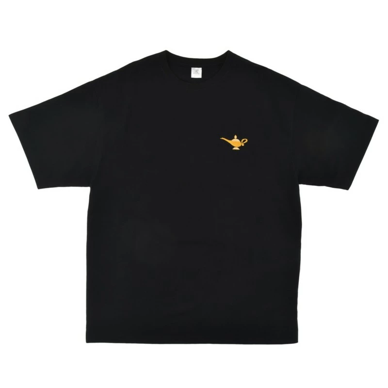 Celebrate 30 years of Aladdin with this short-sleeved commemorative T-shirt. Genies signature blue against the black fabric is magically eye-catching. The front of the shirt features the well-recognised magic lamp, re-created in embroidery while the back is a theatrical arrangement of Genie as his many different character forms. It’s the perfect way to be part of Aladdin’s 30th anniversary.