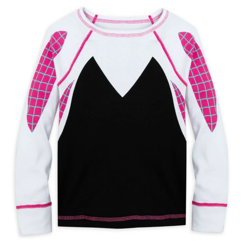 A good night’s sleep will transform any average kid into a mighty Marvel Super Hero when wearing this soft pajama set featuring an allover Ghost Spider (a.k.a. Spider-Gwen) costume print.