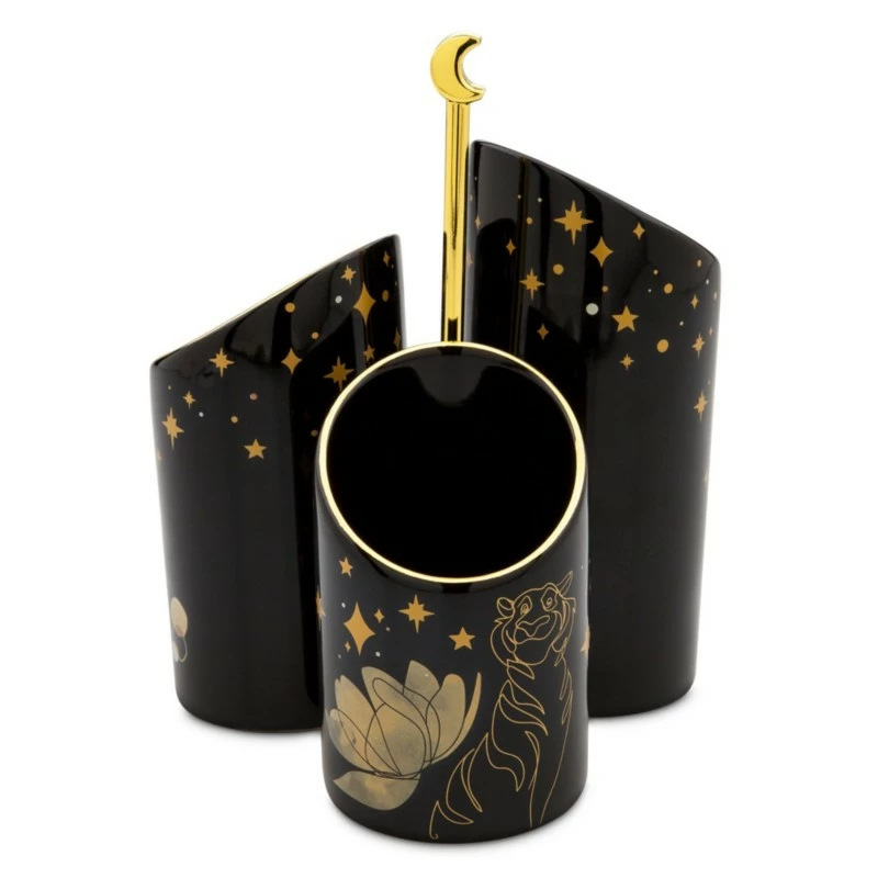 Take your beauty station to a whole new world with this Jasmine makeup brush holder. Inspired by Disney’s Aladdin (1992), this holder contains three attached cups, goldtone rod with crescent moon topper, and stunning artwork of Jasmine.