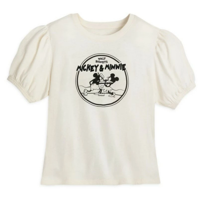 Be ever-ready for fashion fun with this Mickey and Minnie t-shirt! Bringing character fun to a classic wardrobe staple, the puff sleeve tee features classic Mickey and Minnie artwork.