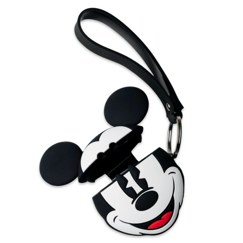 Mickey will help you keep your wireless headphones safely stowed when not in use with this case. Perfect for use with ear buds or AirPods, the flip up case is also equipped with split key ring and clasp so you can attach it to your keys or a bag!
