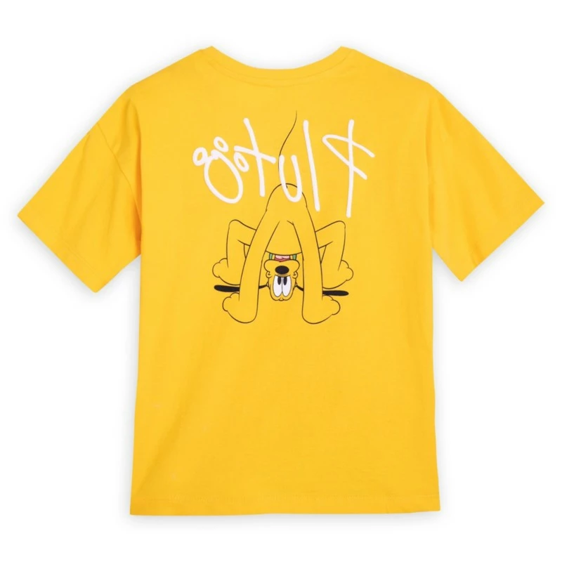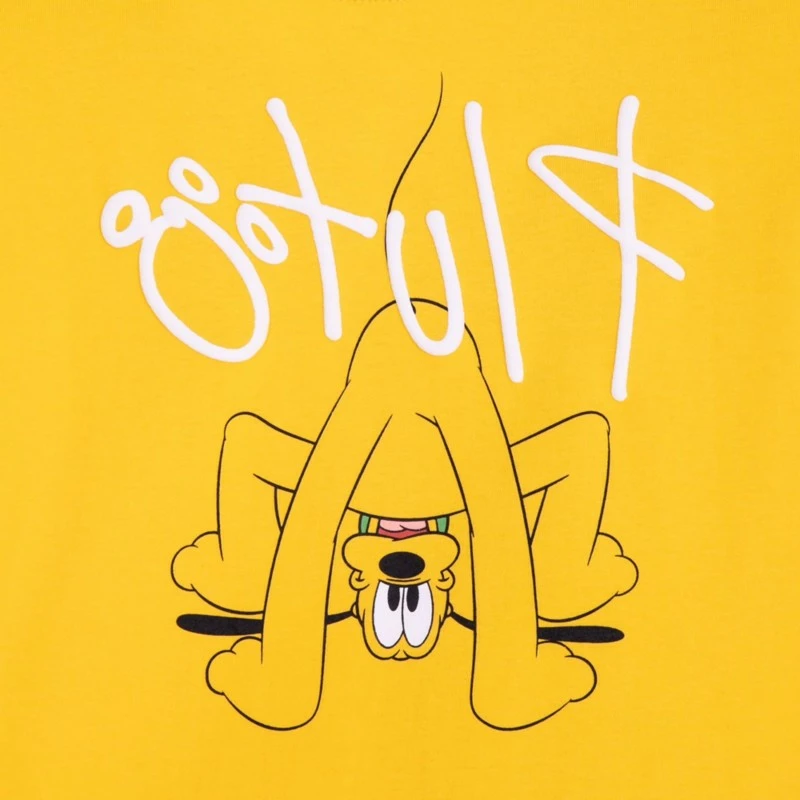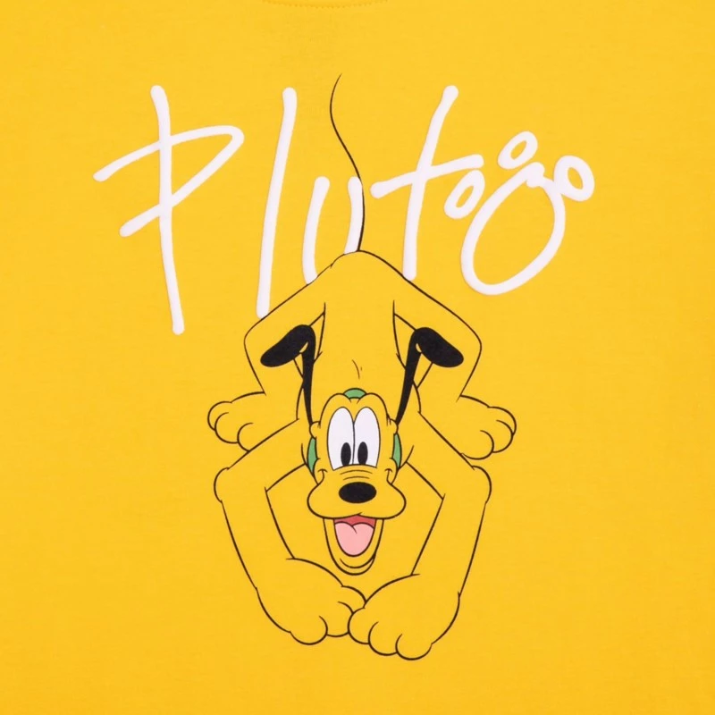 Hot dog! Mickey’s best pal is ready for play any time of day on this vivid colour tee with puffy ”Pluto” signature.