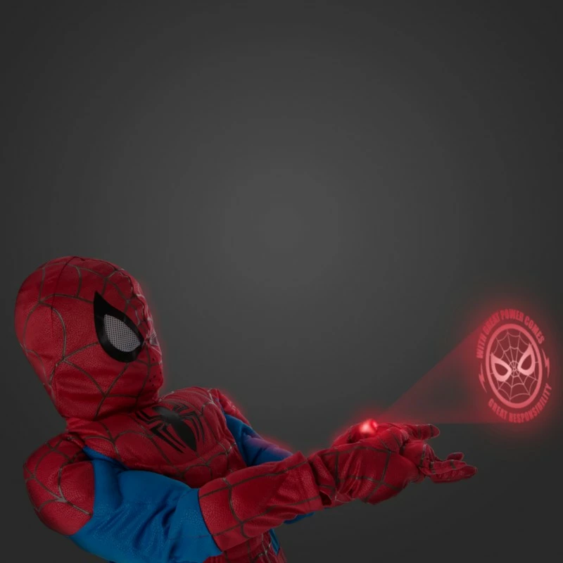 Your friendly neighbourhood Spider-Man comes to wall-crawling life in this detailed, muscle-padded costume with classic Marvel Comics styling. Includes bodysuit, mask, and web projection gloves.