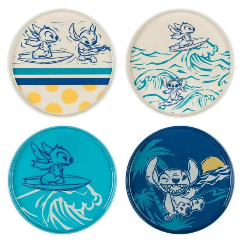 Serve up some galactic goodness with this Stitch plate set. Each of the four sturdy melamine plates features a different design with a summer loving Stitch and one with his sweetheart Angel.
